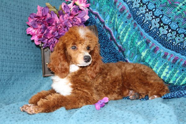 Meet Scarlett Rose, a breathtaking AKC-registered red abstract Miniature Poodle. At 5 pounds now, she is projected to mature between 13–14 pounds—the ideal size for a versatile breeding program. Her conformation is exceptional, with balance and elegance that exemplify world-class quality.